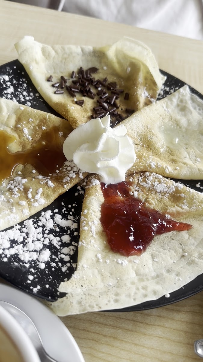 The customer reviews reflect the café's well-earned reputation. One happy visitor, SVH, exclaims, “If you’re looking for a great place for crêpes and coffee without pretense, this is it.” They fondly remember the friendly service and excellent views – a sentiment echoed by many. Kotryna Sniukaite highlights the beautiful outdoor seating, saying, “We had a nice little table outdoors and enjoyed tasty coffee and a delicious savory crepe,” encapsulating the café's relaxed vibe that pairs perfectly with its delightful menu.